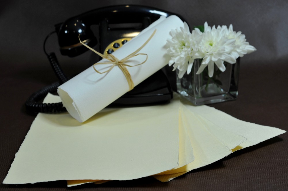 W mojej pracowni dużo jest wyjątkowych papierów czerpanych o charakterystycznych nierównych brzegach. Papier ręcznie czerpany kremowy (ecru) to najbardziej uniwersalny i najczęściej wybierany kolor papieru. Sprawdza się zarówno do nowoczesnych jak i stylowych projektów, można na nim drukować w pełnym kolorze jak i pisać czy malować. Jeśli szukacie pięknego papieru do bardzo różnych kreatywnych prac to ten kolor będzie moim zdaniem najlepszym wyborem.