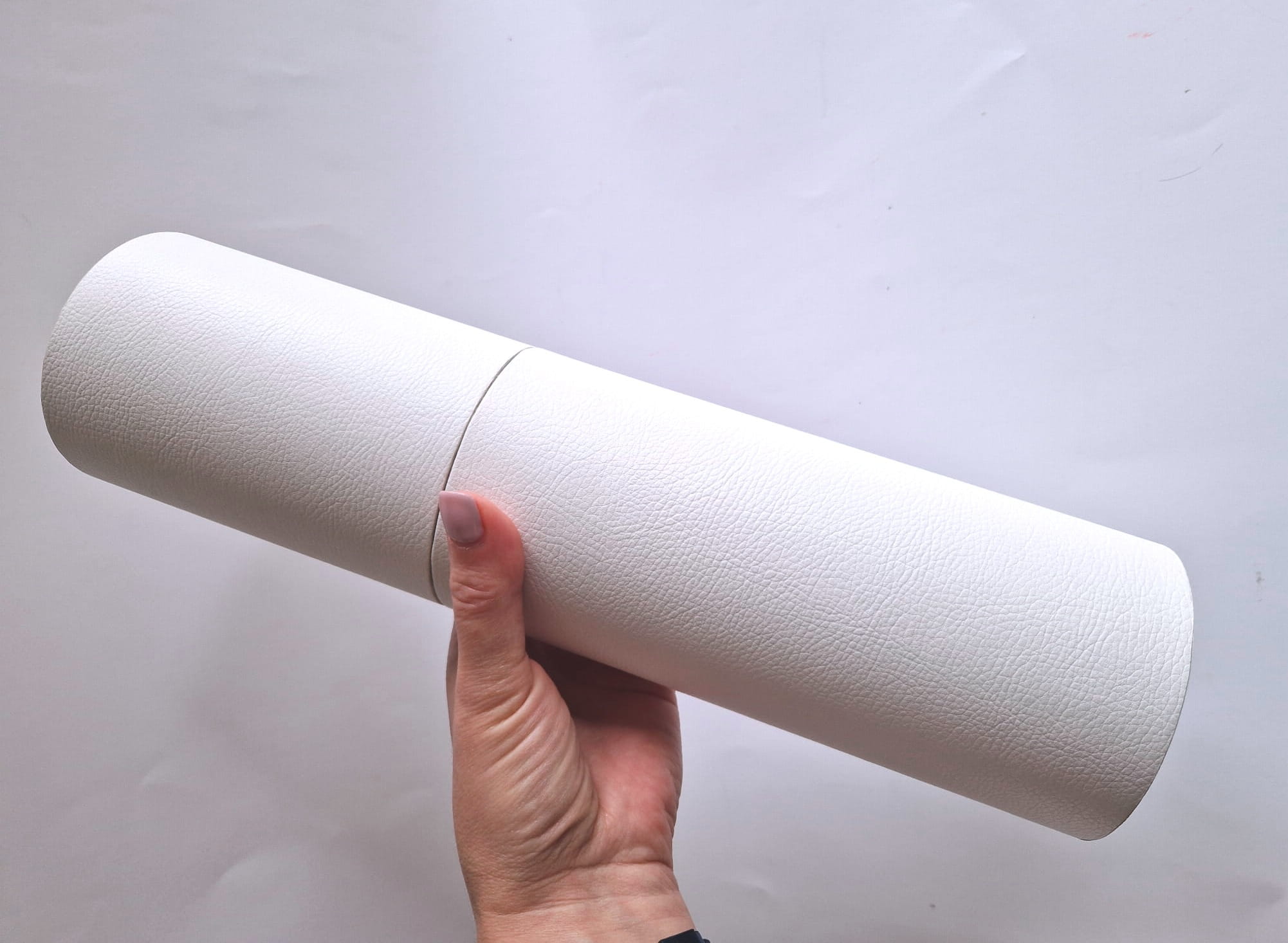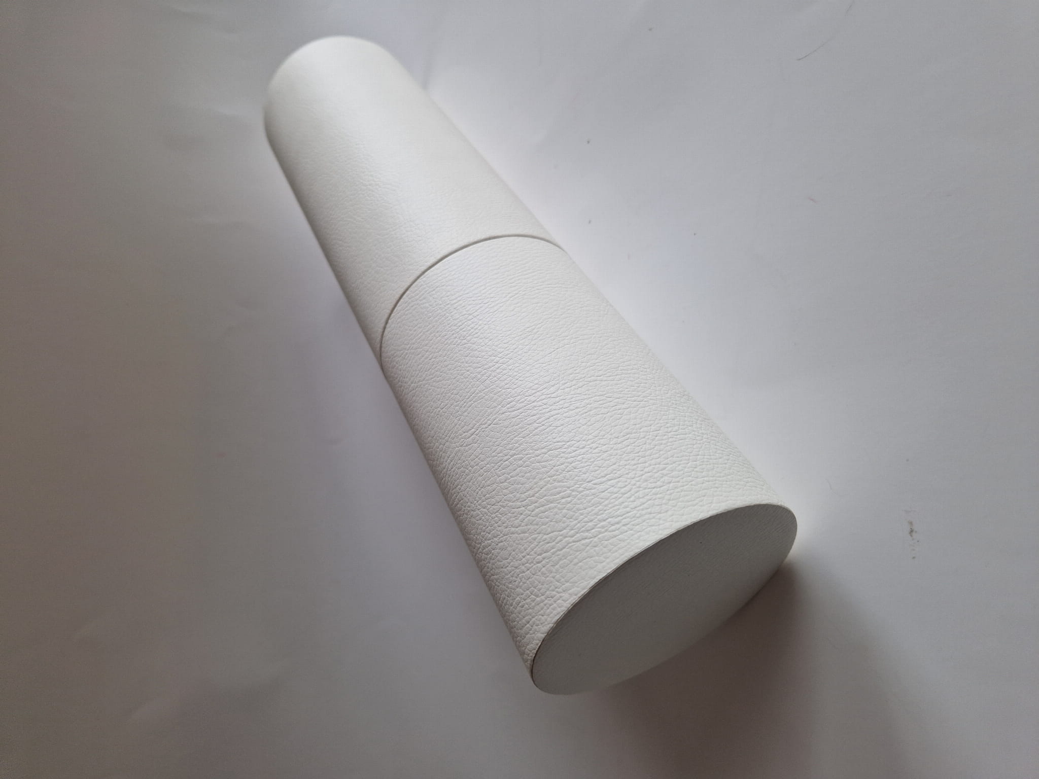 Tuba 2-dzielna - składa się z dwóch elementów połączonych kołnierzem. Podstawę stanowi spiralnie skręcona 3-warstwowa tuleja tekturowa o grubości ścianki 1,3 mm, wewnątrz wyklejona białym papierem. Na zewnątrz miękka, biała okleina introligatorska skóropodobna z widoczną fakturą.