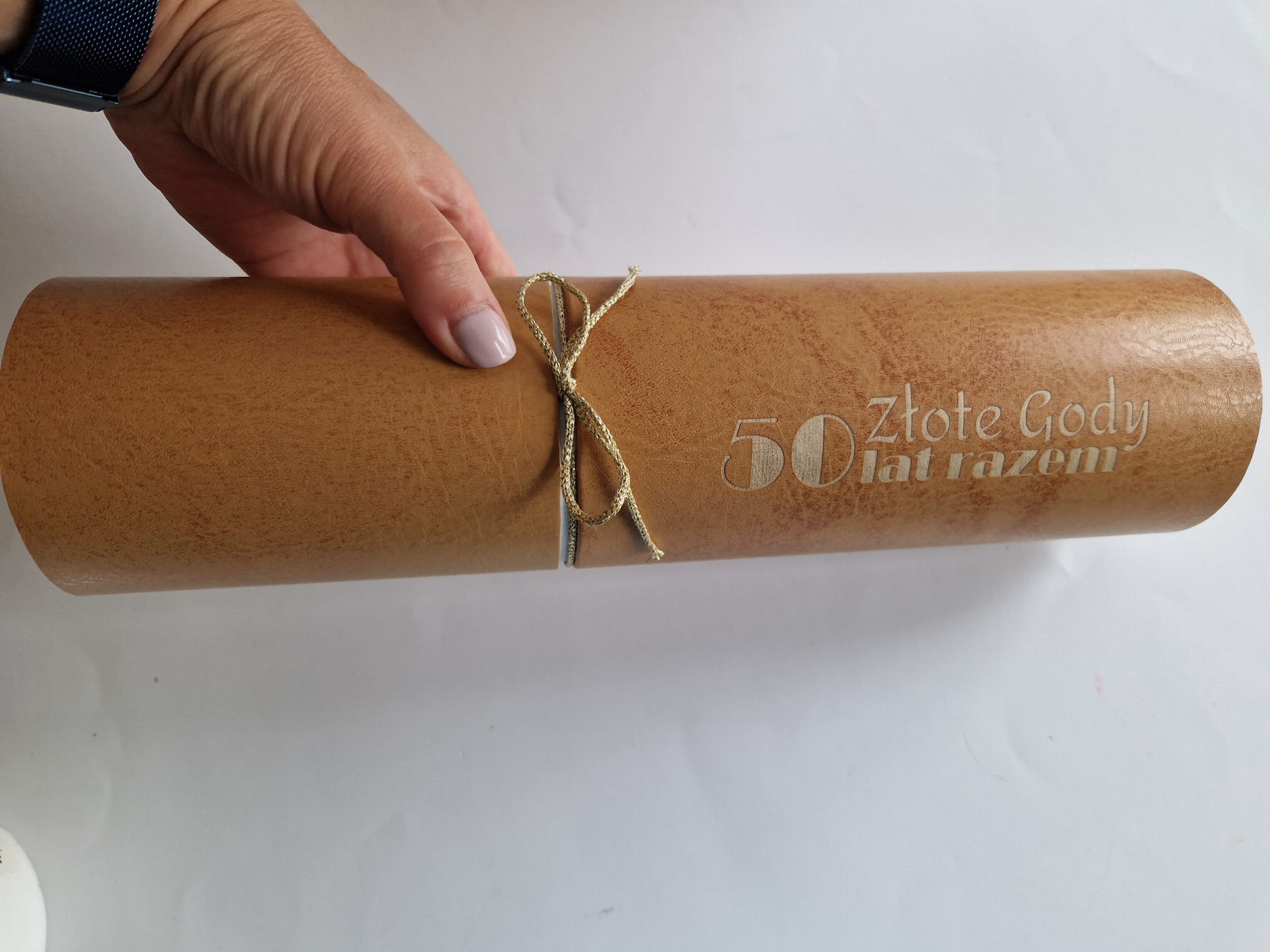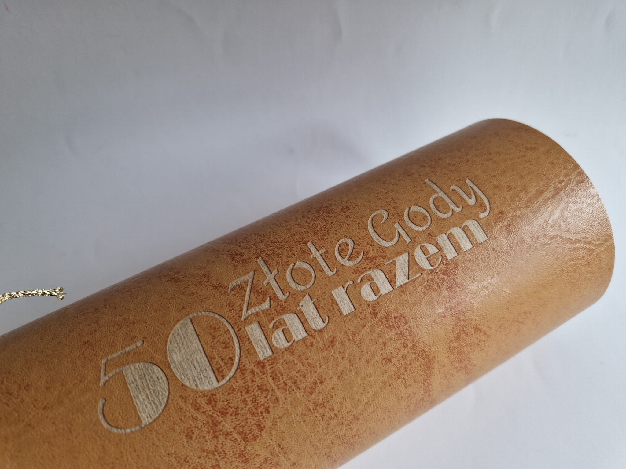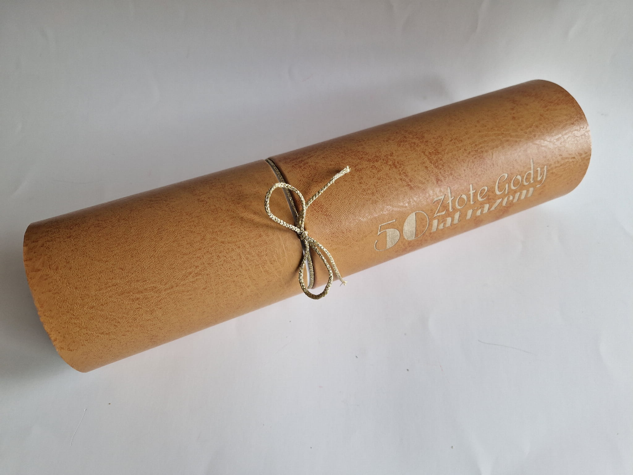 Tuba introligatorska w całości wykonana ręcznie, z dbałością o szczegóły. Elegancka i estetyczna idealna na wyjątkowe wydruki A3 upamiętniające ZłoteGody, czyli 50tą rocznicę ślubu.