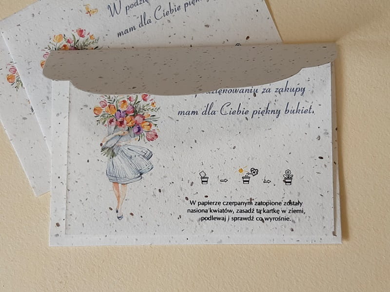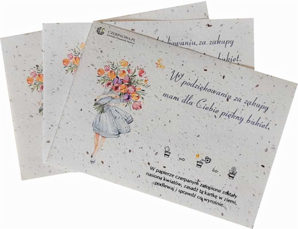 Ulotka A6 z papieru czerpanego z nasionami kwiatów - 10 x podziękowanie za zakupy A6